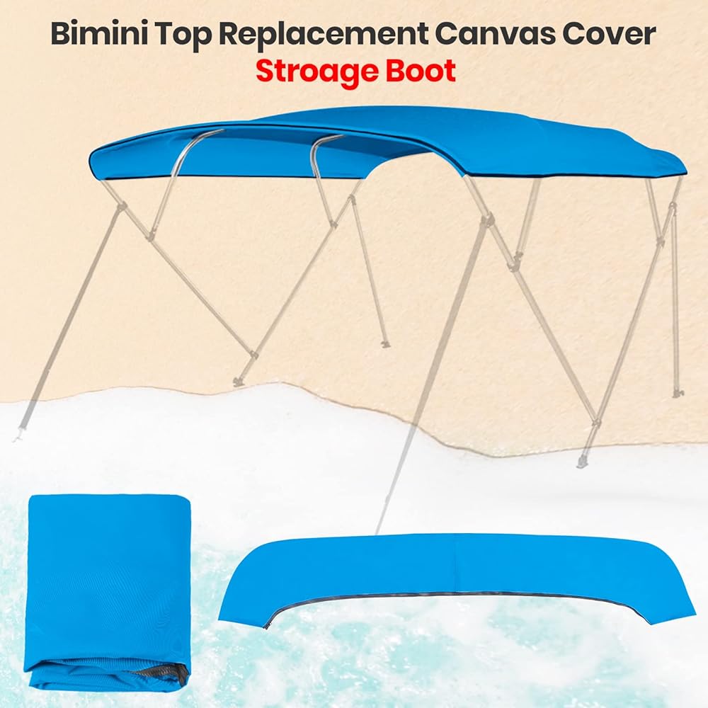 Universal Fit All 4 Bow Bimini Replacement Tops for Boats - Superior quality zippered sleeves have wide room for both round tube and square tube, fits Bimini top frame up to 1.3in. Double-stitched craft ensure boat canopy can work for a long time.