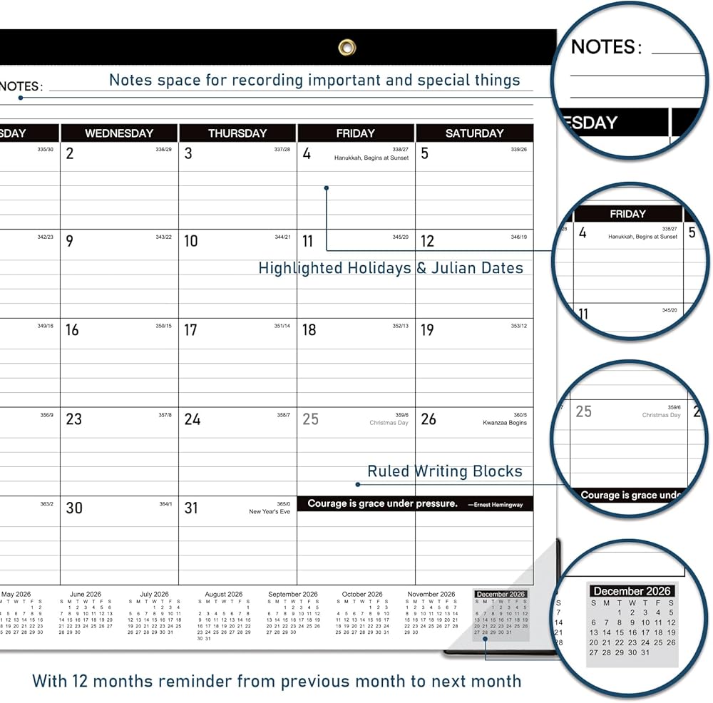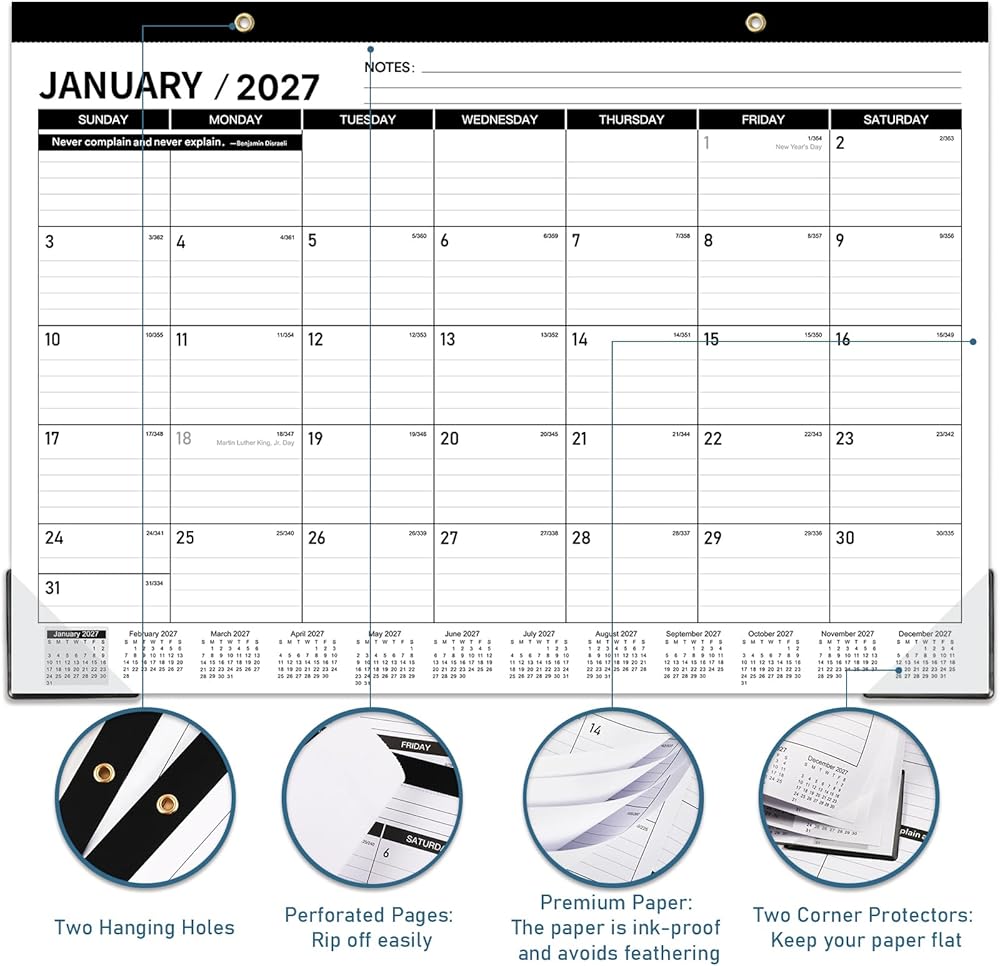 2026-2027 Desk Calendar - JUL. 2026 - DEC 2027, 18 Months Large Desk Calendar 2026-2027, 17" x 12", Desk Pad, Large Ruled Blocks, to-do List & Notes, Best Desk/Wall Calendar for Planning or Organizing