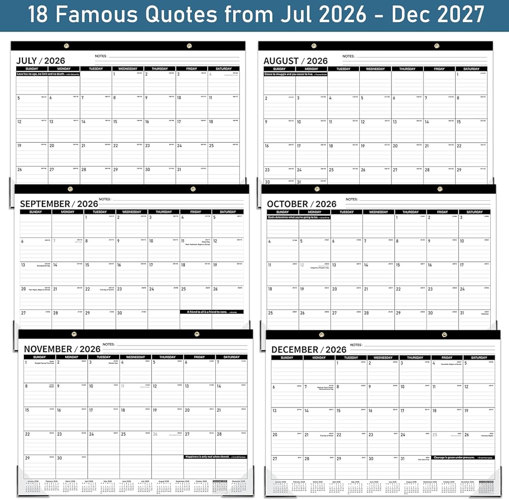 ❀ 2024-2025 Desk Calendar – July 2024 to December 2025, this desk calendar 2024-2025 covers 18 months with quotes, manages life and work in wisdom. In addition, Julian date and holiday markers help you focus on easy and efficient planning and scheduling, and track important dates / events clearly and orderly.