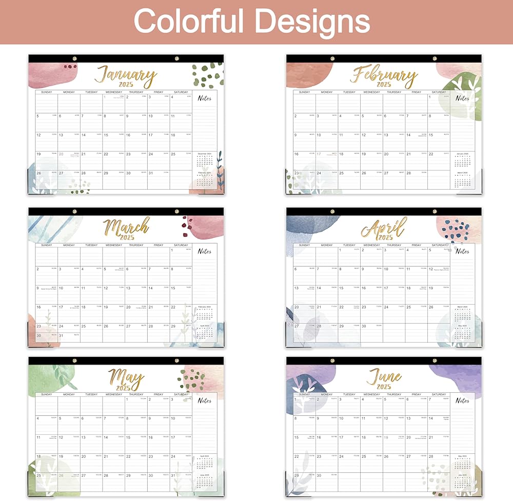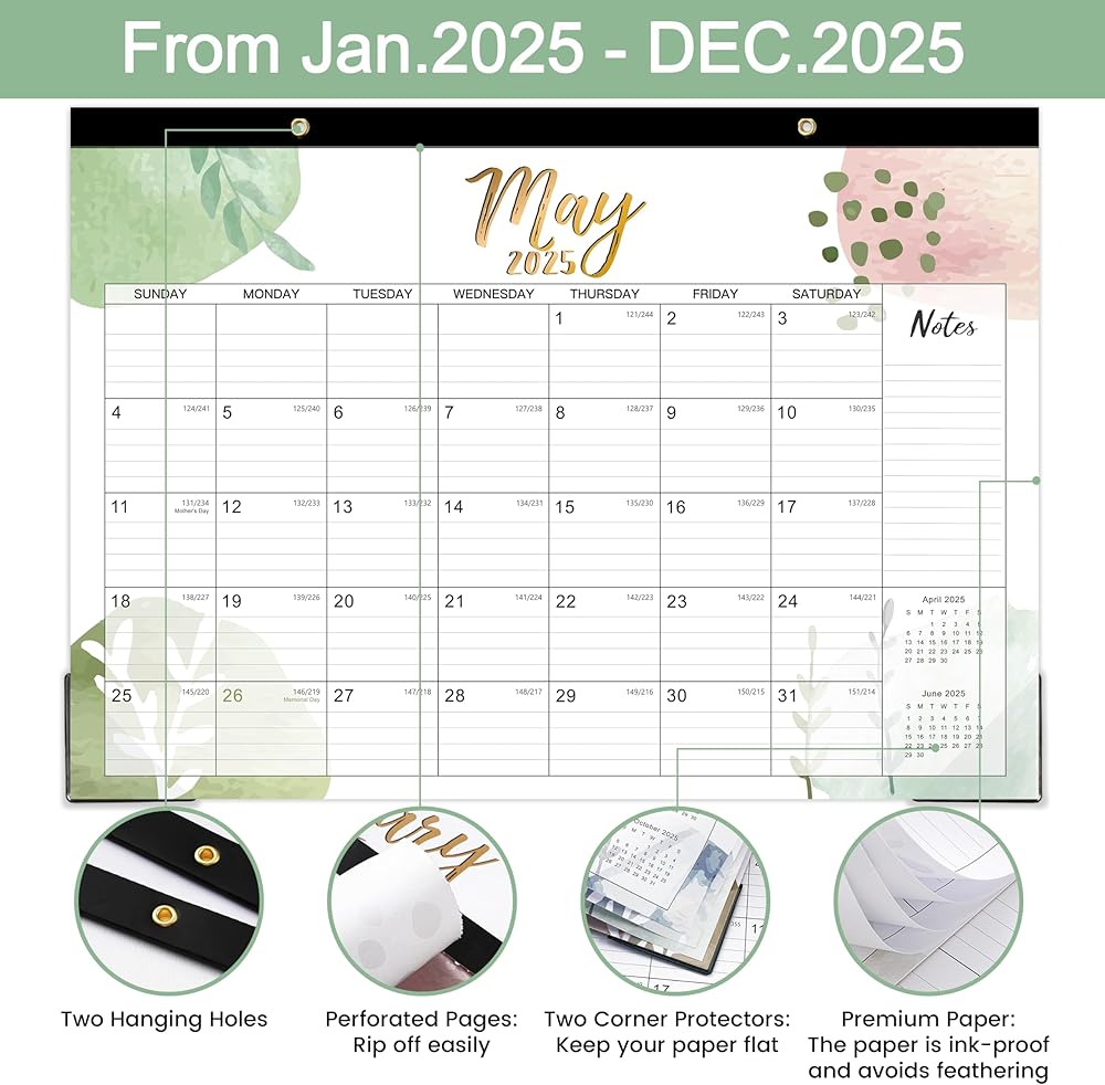 🌷 Superior Designs - The cutting line design of the calendar 2024-2025 desk allows for easy tearing off and transfer to a new month plan. There are two corner protectors in the desk calendar to protect the flatness of the paper. In addition, this desk calendar 2024-2025 has two hanging holes on the top, which can be used as a wall calendar.