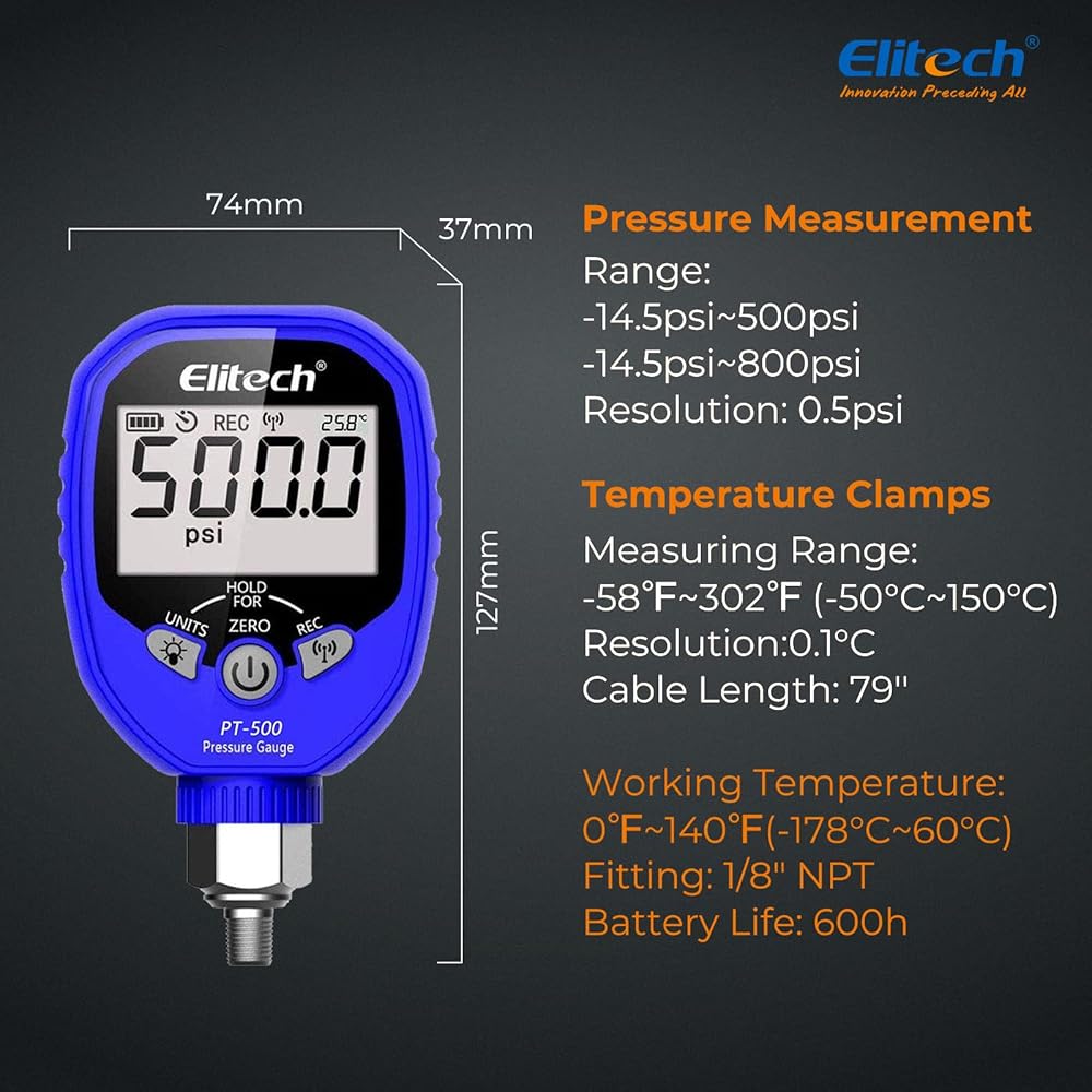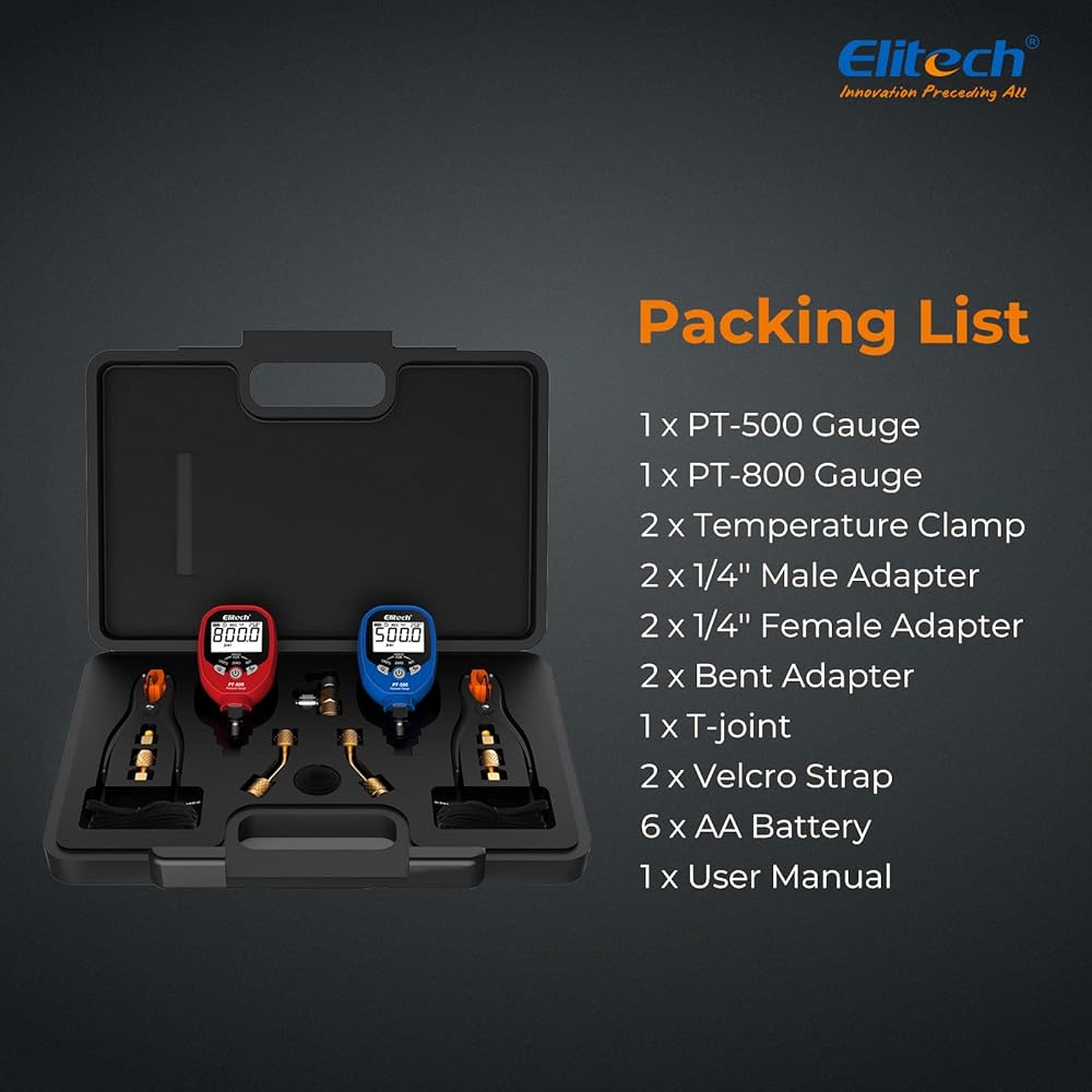UPGRADED ELITECH TOOLS APP(ioS and Android): An intergraded app, that allows users to manage all Elitech tools such as vacuum pump, digital manifold, vacuum gauge, pressure gauge, refrigerant charging scale on one app, more efficient and more intelligent.