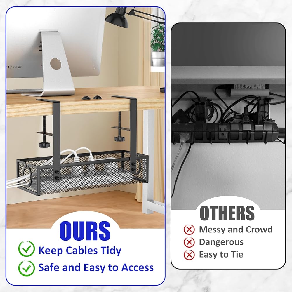 🔥【 𝗨𝗣𝗗𝗔𝗧𝗘𝗗 𝗘𝗫𝗧𝗘𝗡𝗦𝗜𝗢𝗡𝗦 𝗖𝗟𝗔𝗠𝗣𝗦 】Upgraded desk cable tray:13.38in x 4.72in x 7.08in(34*12*18cm),with longer clamp length - 3.9in(10cm),Longer arm supports tables with irregular edge, better weight balance,no slipping off.