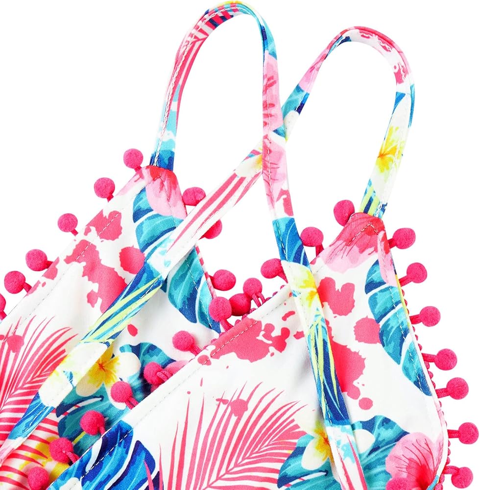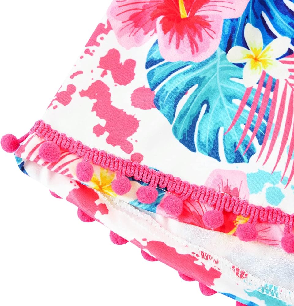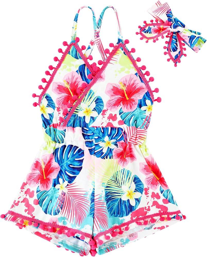 Special design:This romper is very bright color, Pineapple,Floral Unicorn Gaxly Fish Scale and So print,splicing with Pompom ball aroung the edge,very cute and special.It is strap and backless,you can tie the strap on back, it will make you babys more attractive and unique.