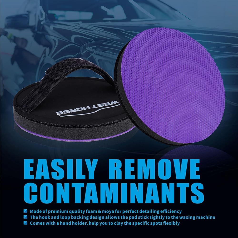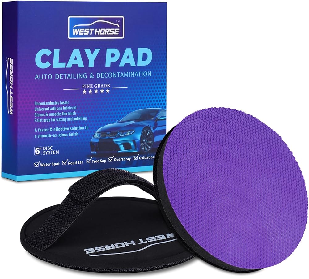 Paint Protector: West Horse clay pad can works on surface, chrome, steel, glass, can quickly remove contaminants such as heavy oxidation, rain stains, ferrous powder, light rust, brake dust, pollen, bugs, the effects of acid rain and tree sap ect.from your car and leaves a shiny flawless paint finish.