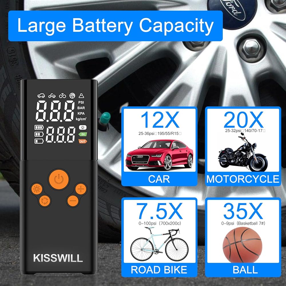 Tire Inflator Portable Air Compressor, 2X Fast Air Pump with Digital Pressure Gauge150 PSI, Auto Shutoff for Car Tires, MotorcycleBicycle and Ball, Dual-Use Type