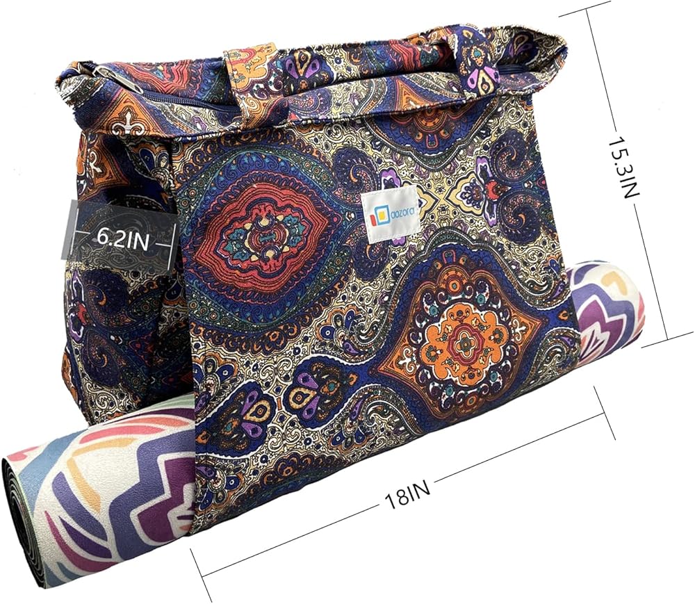 BEAUTIFULLY CRAFTED - Crafted Specifically to Carry All of your Yoga Essentials in a Large, High-Quality, Over the Shoulder, Gender Neutral Tote Bag.It fits for one yoga mat, 2-3 clothes, a water bottle, 2 towels, 2 yoga blocks, phone and wallet, and more. Measurement 18in x 15.5in x 6.5in.