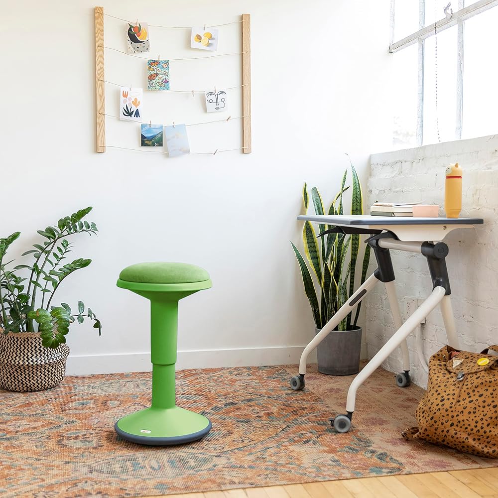 Wobble Stool: Adjustable wobble stool with a cushion top for added comfort; backless design encourages the development of proper posture and helps strengthen core muscles