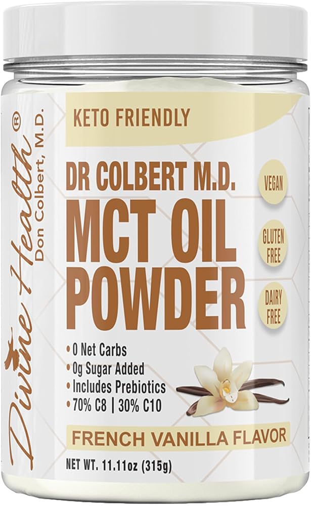 You provided: 100% PURE MCT OIL POWDER: Formulated By New York Times Bestselling Author Dr. Don Colbert, MD. Delicious, All Natural French Vanilla flavor. Keto Friendly, NonGMO, Gluten Free, Lactose Free, Soy Free, 0 Net Carbs, No Artificial Sweeteners or Preservatives.