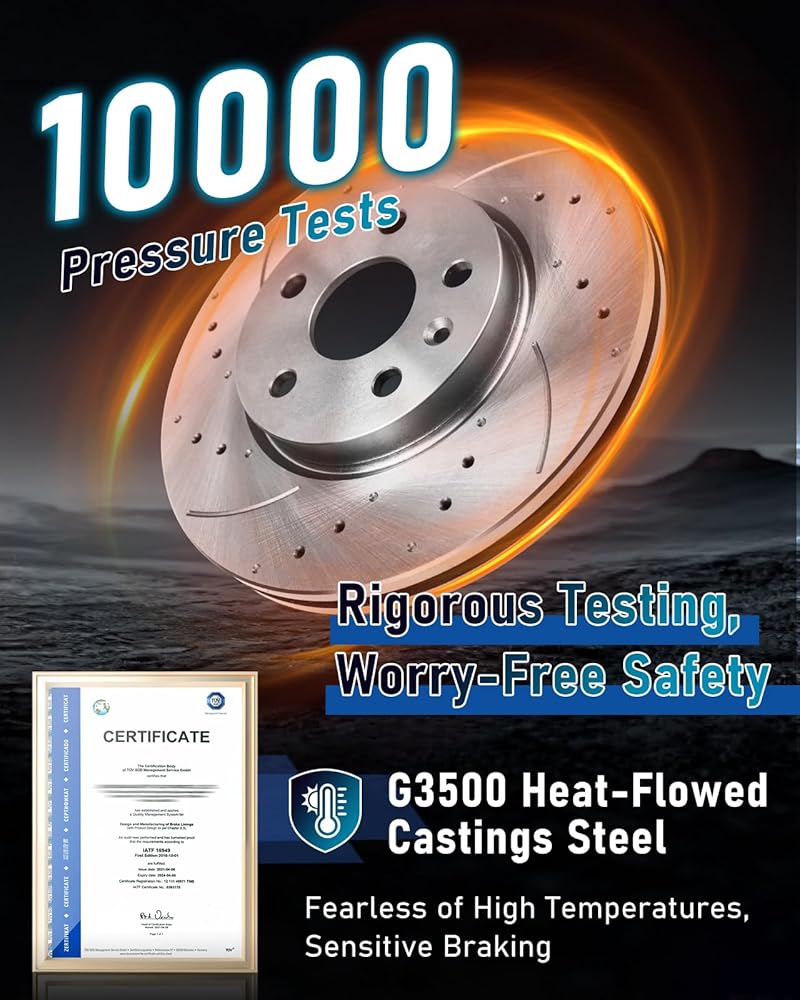 [Anti-rust and Protection]: The Geomet coating automotive replacement brake kits have passed a 720-hour salt spray test and show no red rust. At the same time, it uses water-based coatings that comply with U.S. VOC regulations and does not contain organic solvents.