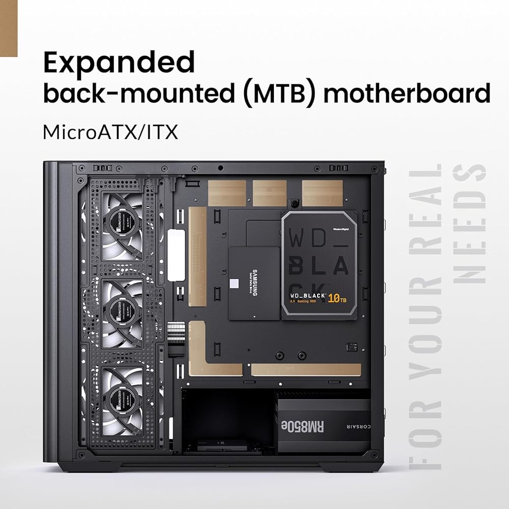 JONSBO D300 Black Micro-ATX Tower Pc Case,One-Piece Glass Panel AO270 Deg View, MATX Back Plug-in BTF Motherboard, Support 360 AIO, 40-Series GPU,with Fans 4PCS (3 Reverse +1 Positive) Black