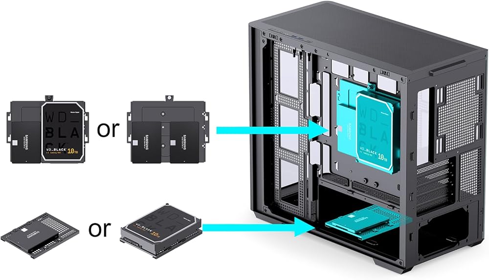 - Drive Bay:Back : 2.5SSD*2 or 3.5HDD*1+2.5SD*1 Bottom : 3.5HDD *1 or 2.5SSD*1