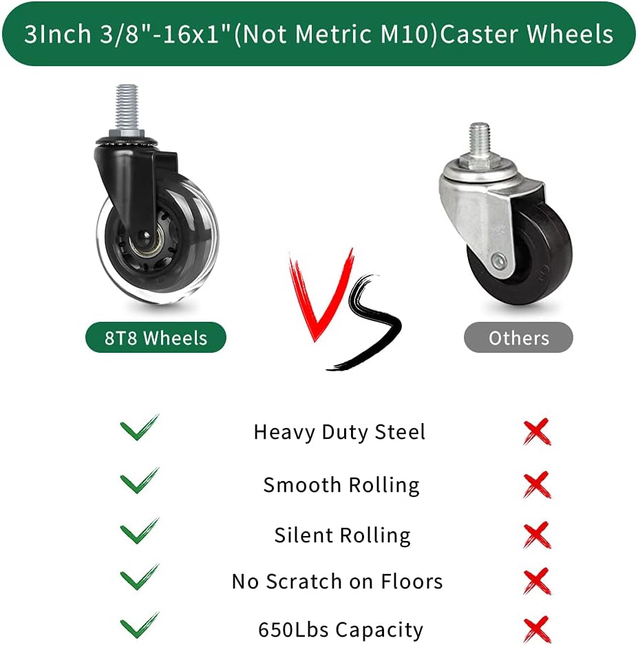 Many customers ask if the caster wheels are safe for their floors.Our question is absolutely yes,the old original caster wheels may cause big damage to floors,this is a serious issue.