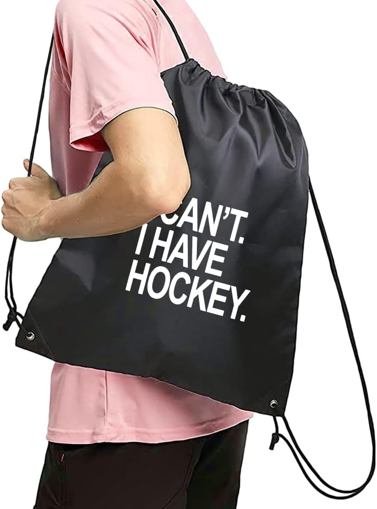 Haizct I Can't I Have Hockey Backpack, Gifts for Hockey Fans, hockey player Gift, Unisex Drawstring Backpack Bag for Gym Shopping Sport Yoga Dance Rehearsa