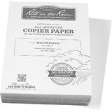 WEATHERPROOF PAPER: 500 sheets of white 20# Copy Paper per pack. All-weather paper won't turn to mush when wet and will repel water, sweat, grease, mud, and even survive the accidental laundry mishap. Make sure your printer paper stays RIGHT in the Rain.