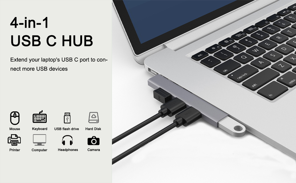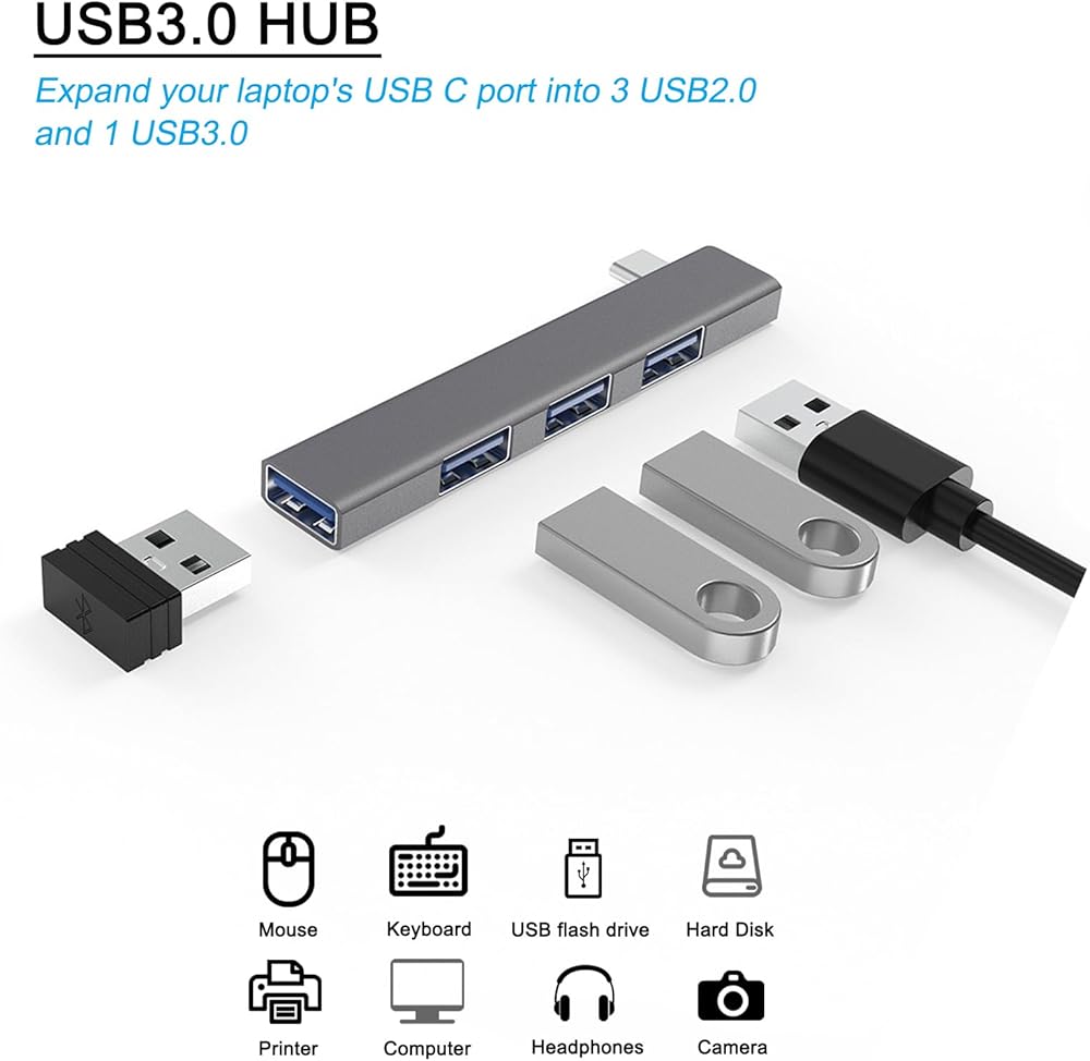 USB Hub for Laptop, 4-Port USB 3.0 hub USB Splitter, USB Expander for Laptop, PC, MacBook, Keyboard, Flash Drive, Mouse and More USB Devices (USB C Hub)