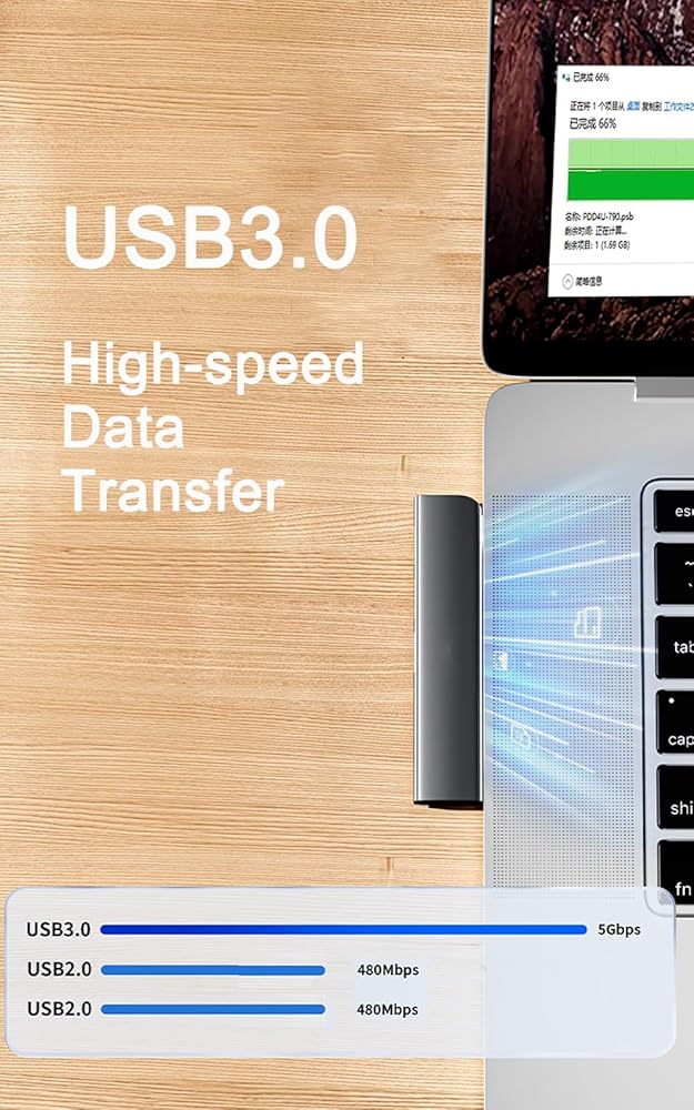 【5Gbps High-Speed】USB 3.0 port supports super faster data transfer up to 5Gbps which is 10X faster than USB 2.0 (480 Mbps), which allows you to transfer datas in just seconds.