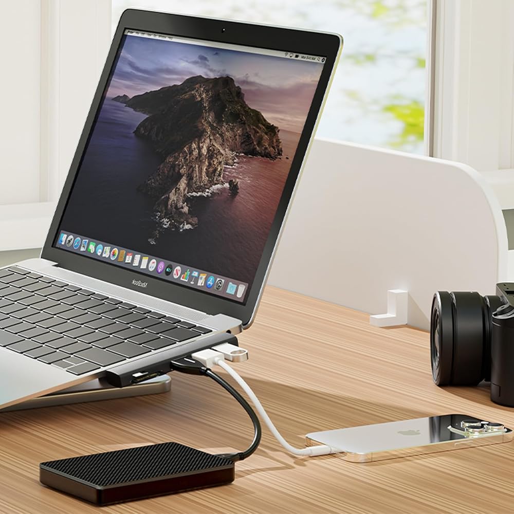 【Portable USB Hub】Plug and play, no software, no drivers needed. The ultra-slim design makes this compact USB adapter portable without taking up much space.