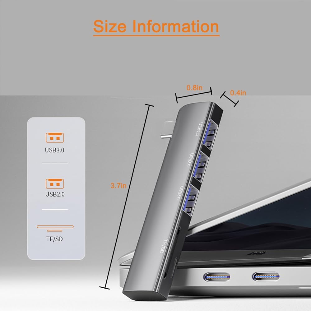 【5 Ports USB Hub】Expand your laptop's USB A port into 1 USB 3.0 port, 2 USB 2.0 Ports and TF/SD Memory Card slots(Two card slots cannot be used at the same time).