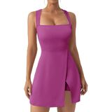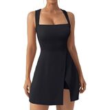 Design:This golf dress with sleeveless,square neck,side slit design.The square neck athletic dress adds an elegant touch,and the sleeveless,side slit design allows for added mobility on the court.Perfect gift for women, ladies,and teen girls alike.