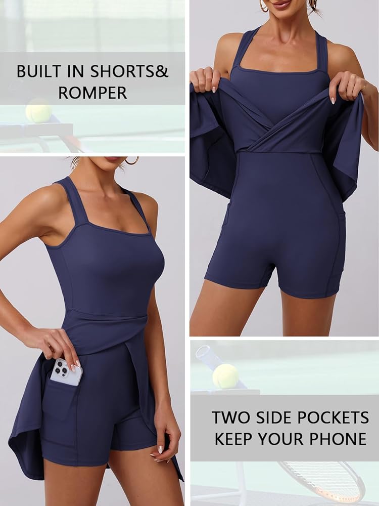 Golf Dresses for Women with Shorts:The Dokuritu athletic dress is a lightweight and stretchy A-line mini dress with shorts underneath for coverage.Flat seams keep the shorts feeling smooth against your skin,two side pockets are added in undershorts are great for keeping your essentials within reach.