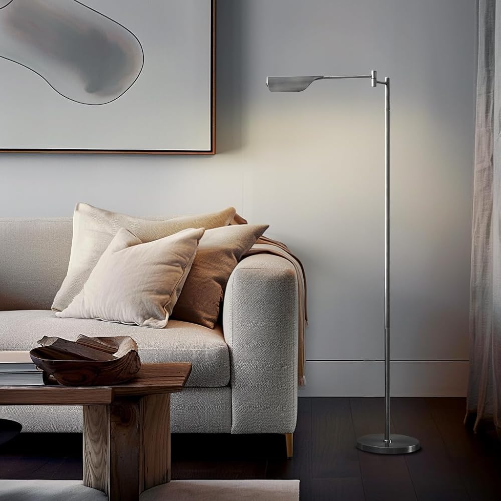 Modern Floor Lamp With Adjustable Arm & Head: Brightech Leaf standing lamp is constructed with a vintage aesthetic coupled with modern materials. This silver adjustable floor lamp will feel natural within any number of decors, including contemporary, industrial, urban, traditional, and rustic. Its thin, sleek design allows it to easily fit in any corner without taking up too much space, and the adjustable head and swingarm allows you to shine light exactly where you need it most within the room.