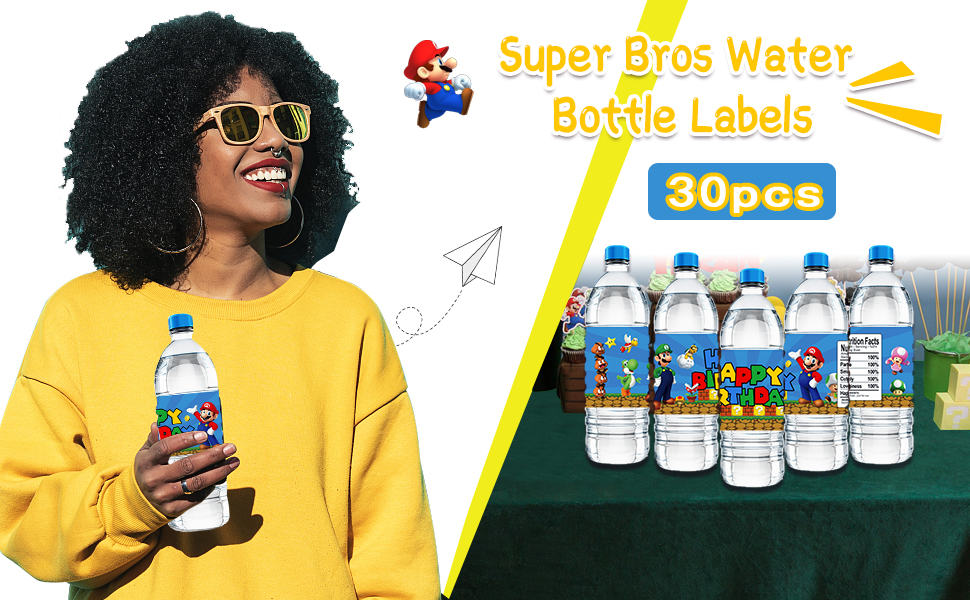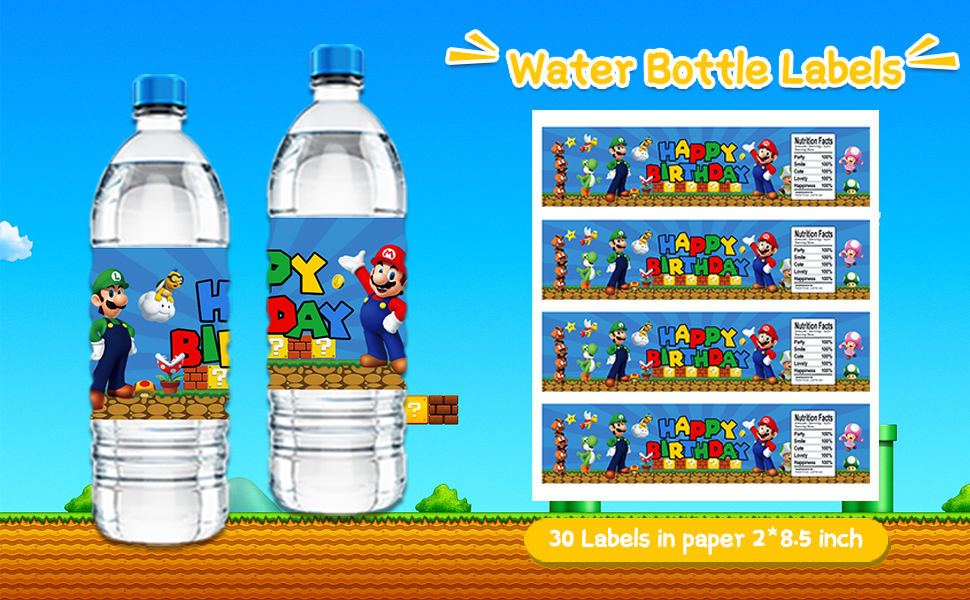 【تصميم يلفت الأنظار】ملصقات زجاجات المياه هذه من سوبر بروس جميلة ومشرقة، ومناسبة جدًا لحفلات أعياد الميلاد التي موضوعها ألعاب الفيديو، ويمكن أن تخلق جوًا قويًا لعيد الميلاد.