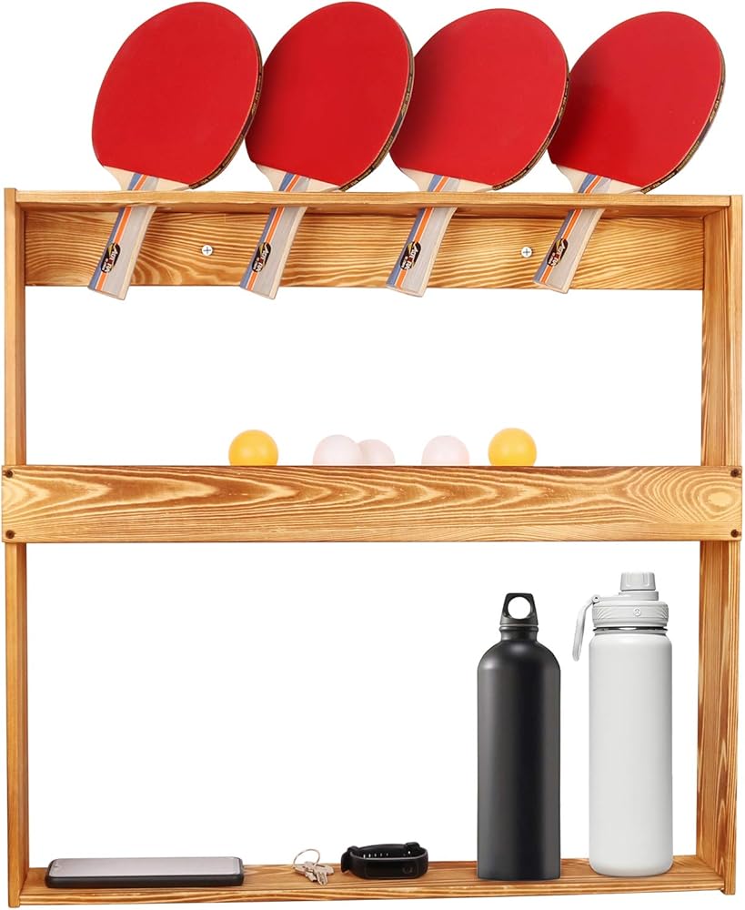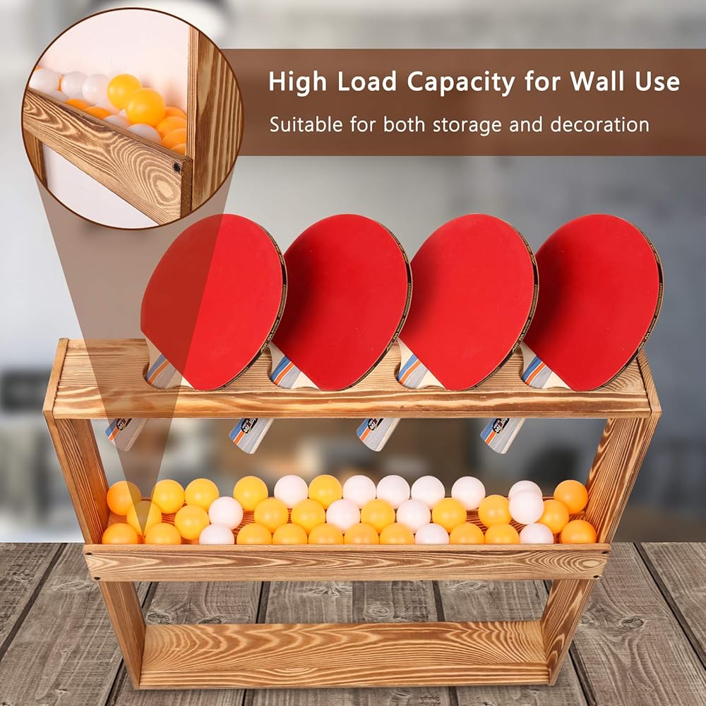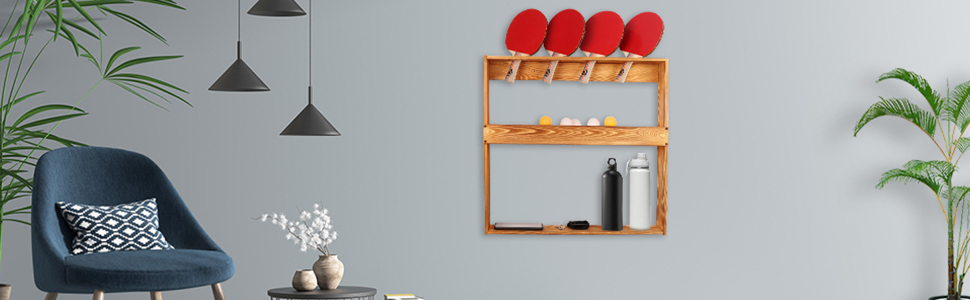 Ping Pong Paddle Holder Storage Rack, Wall Mount Table Tennis Racket Display Holder Shelf for 4 Paddles and Balls Storage in Game Room, Bar Room, Office, Garage, Home