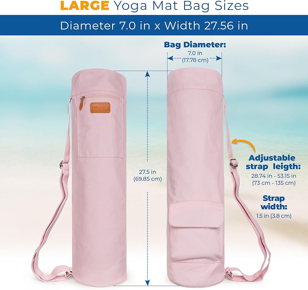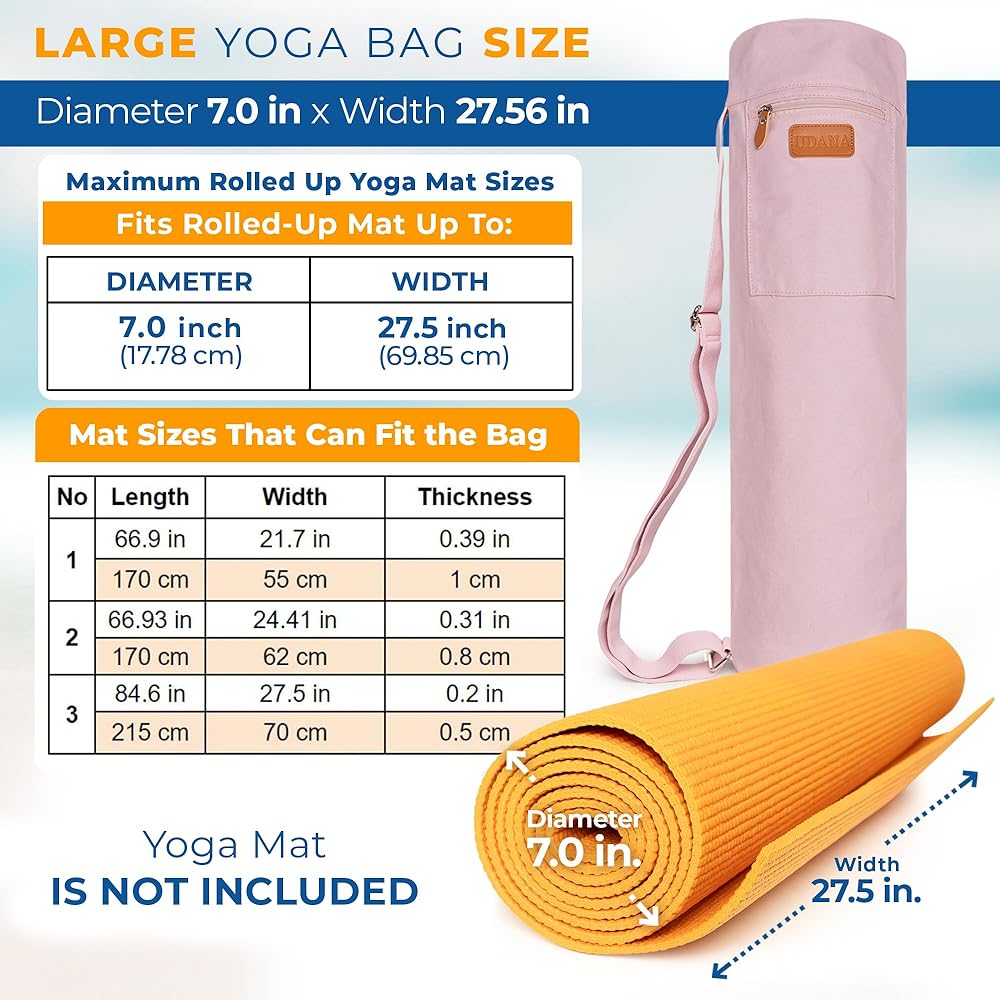 🕉️LARGE YOGA MAT BAG: Fits a wide range of yoga mats, From standard yoga mat to large workout mats, this yoga bag is engineered to fit yoga mats with a maximum rolled-up diameter of 7.0 inches (17.78 cm) and a width of 27.5 inches (69.85 cm)