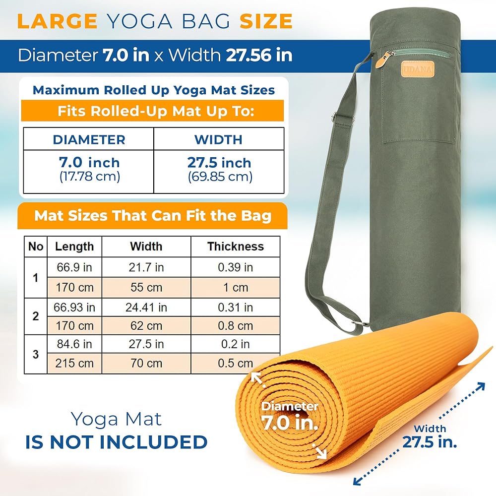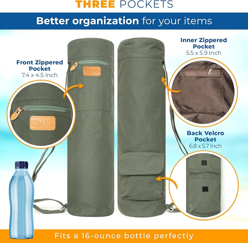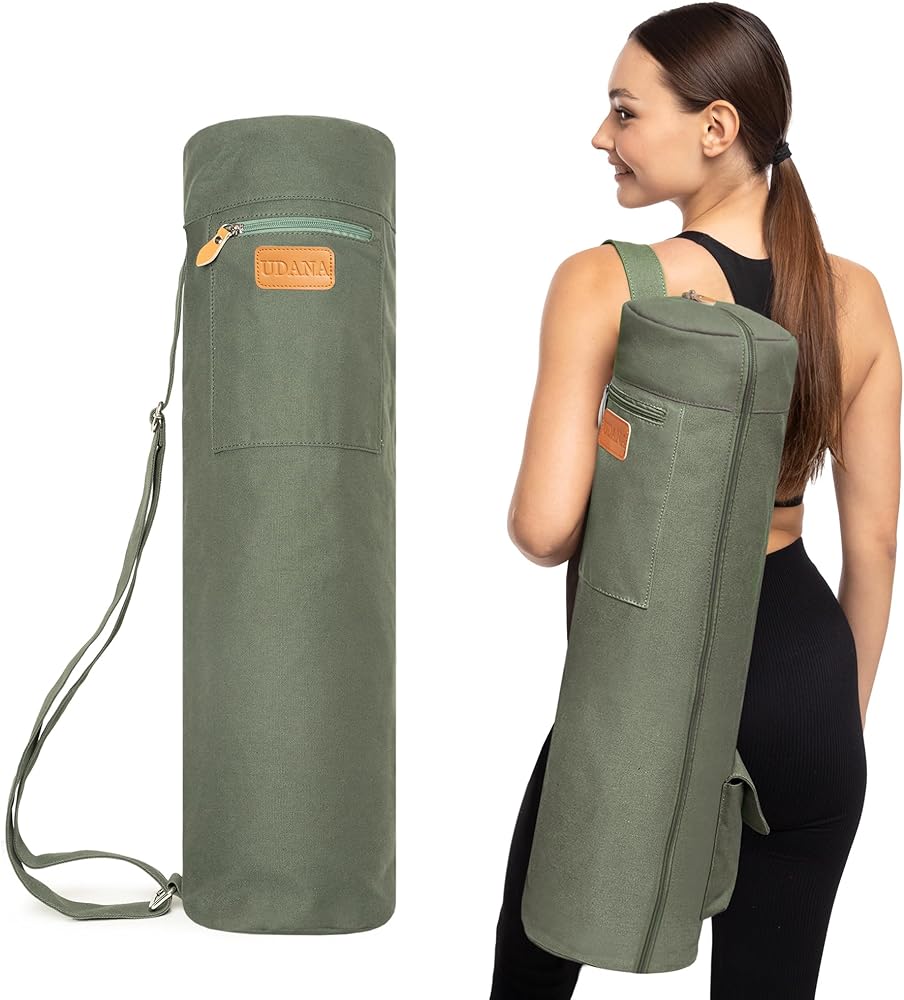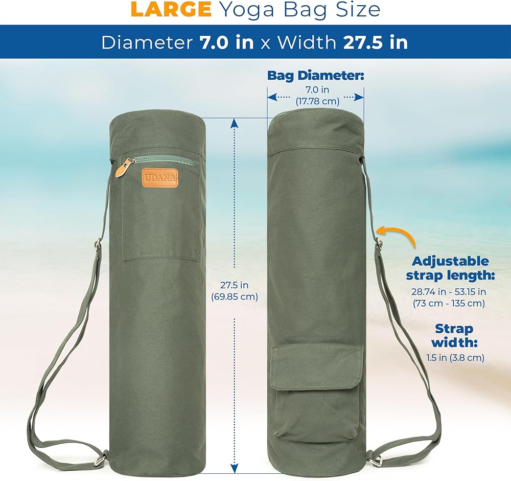 💪DURABLE and CONVENIENT: Crafted with heavy-duty canvas material, the Udana yoga mat carrying bag ensures lasting protection for all your yoga equipment and gym accessories. The dual zipper head design provides super easy access to your yoga mat thick without snagging or breaking. The adjustable strap is designed for a perfect fit, making it effortless to carry your yoga stuff wherever you go.