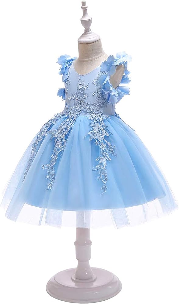 Semi-fixed Lace Pieces Design (Must Note): Lace pieces are semi-fixed. It hangs off the waist area. This is the design of the dress, not a problem of workmanship. Design: Soft lace tulle, cotton lining, sleeveless, zipper back closure, A-line flower girls dress, knee-Length, semi-fixed lace floral embroidery, unique 3D butterfly cuffs, puffy dress. Beautiful and lovely design, flower girl fancy dresses, kids holiday dress, Easter dress toddler, Christmas dresses for kids, Christmas girl dresses.