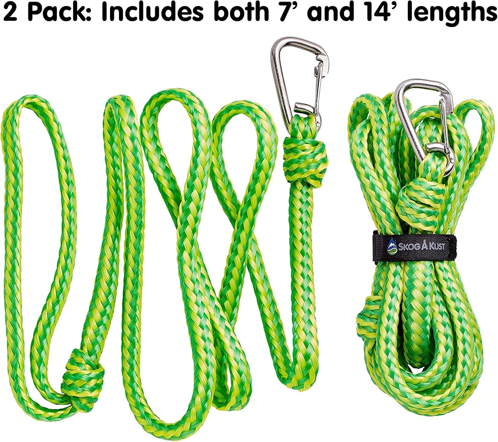 2 PACK: Package includes both a 7ft and 14ft dock line for convenience in a variety of situations. Each dock line is also packaged with reusable velcro cinch wrap which makes for easy storage when not in use.