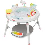 Designed to grow with baby in three stages, Skip Hop's Silver Lining Cloud Baby's View Activity Center is an action-packed take on our best-selling gym. Feauturing the same developmental approach to play and learning as our Explore & More™ version, the décor-friendly design features a 360-degree rotating seat that turns and stretches for bouncing. Our unique Discovery Window gives little ones a clear view of their feet as they play the light-up piano to connect cause and effect. Four dreamy toys can be rearranged for customized play. As baby grows, the activity center converts for easy cruising. At stage three, it transforms into a sturdy toddler table with a plastic chalkboard surface for drawing, playing—the sky's the limit!.