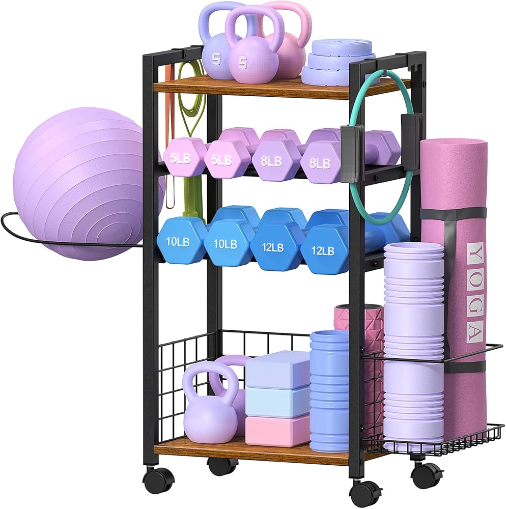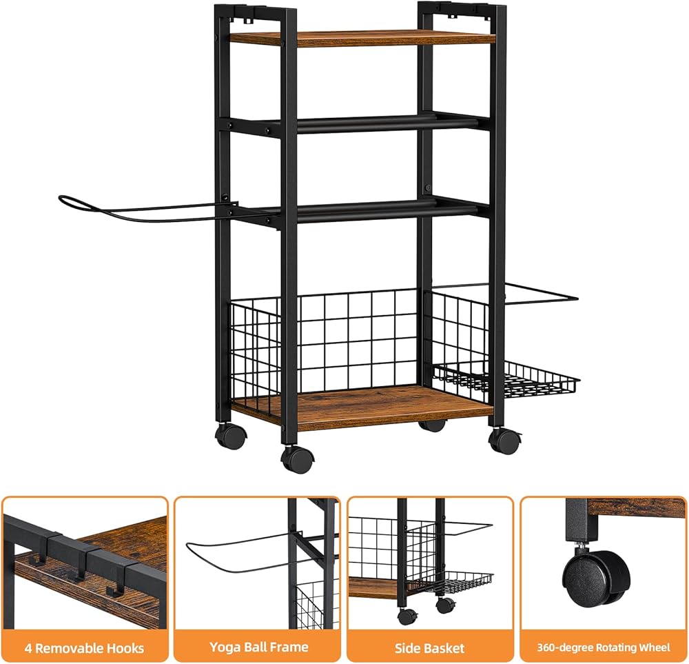 【Easy to Move】Equipped with 4 sturdy multi-directional wheels, two of which are lockable, our home gym storage rack can be easily moved and securely positioned. It provides an excellent solution for safely storing your home gym equipment while ensuring a clutter-free workout area.