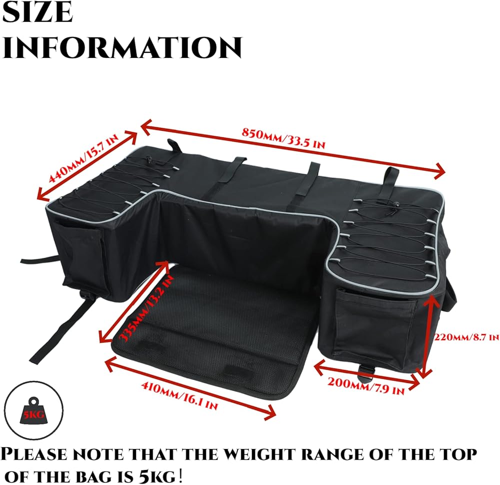 Good Waterproof Performance: ATV rear bag used with high-quality 600D Oxford fabric features excellent water-resistant and wear-resistant, keeping any mud, water, or dust outside and making your supplies clean and tidy