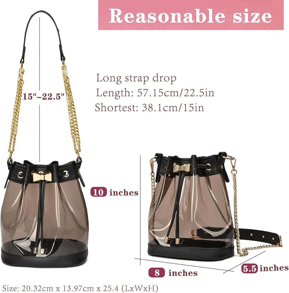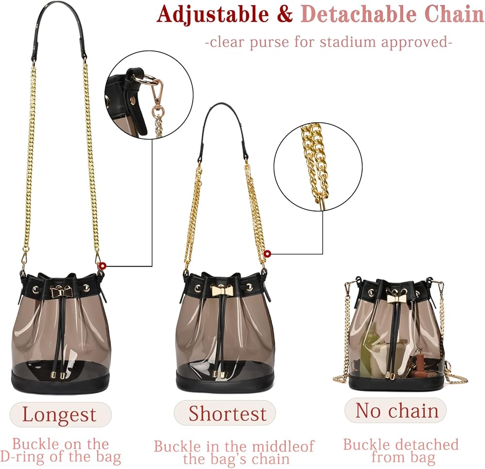 Adjustable Removable Long Chain - clear purses for women stadium with removable and adjustable shoulder strap length is 50 inch/127cm. 2 ways to use - Designed with the adjustable shoulder strap, can be used as tote bag, shoulder bag or crossbody bag