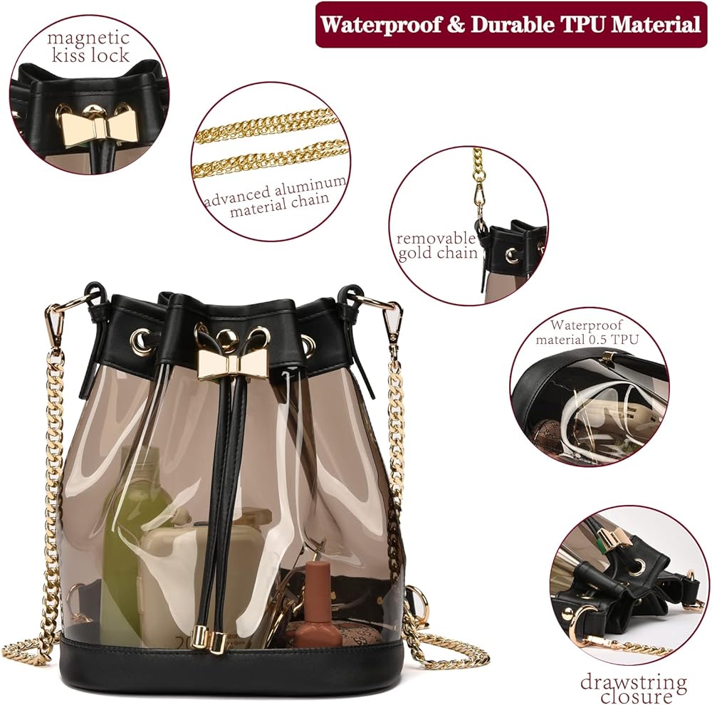 Clear bag Style material - KUI WAN clear purse made with thick and durable 0.5 mm TPU premium customized material (more soft touch than PVC) and not flimsy at all. that features vegan leather trim add stylish style and metal decoration to keep belongings secure