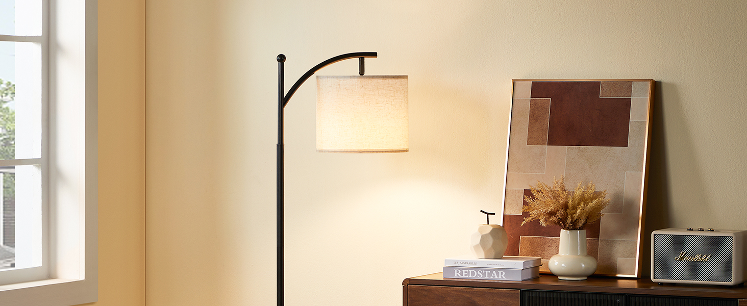 Floor Lamps for Living Room Clearance with Adjustable shade: 61'' arc floor lamp comes with a rotating head, assuring convenience for daily life. When you put the floor light behind your couch, you can adjust the lamp shade to any angle you like, which is very proper for reading and working.