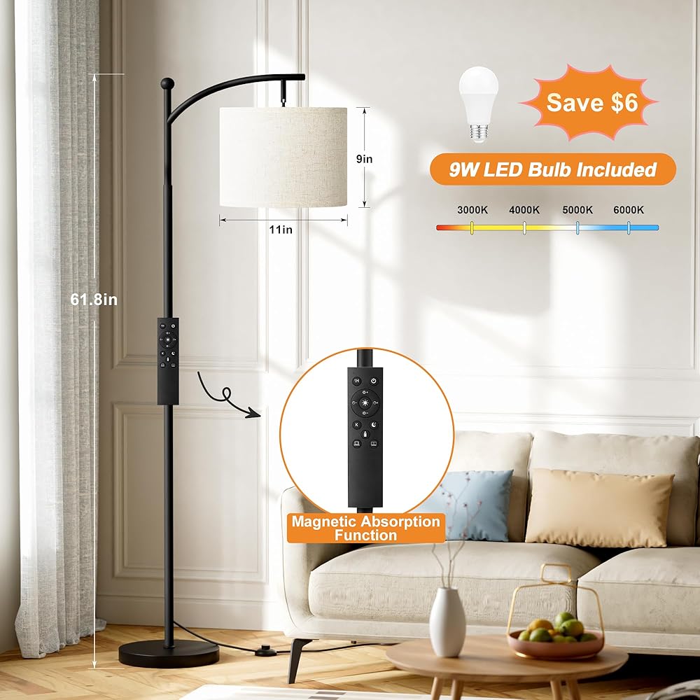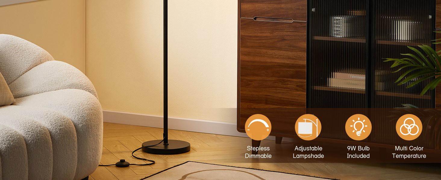 Dimmable Floor Lamp with Remote ControlL & Foot Switch: This 61'' standing lamp adopts a combination remote control & foot switch, assuring convenience for daily life. The 9W bulb is paired with the remote control, then you only need to select the appropriate color temperature and brightness suiting your needs.(Please adjust the foot switch into ON in advance./Our remote control can only work on our own light bulbs.)