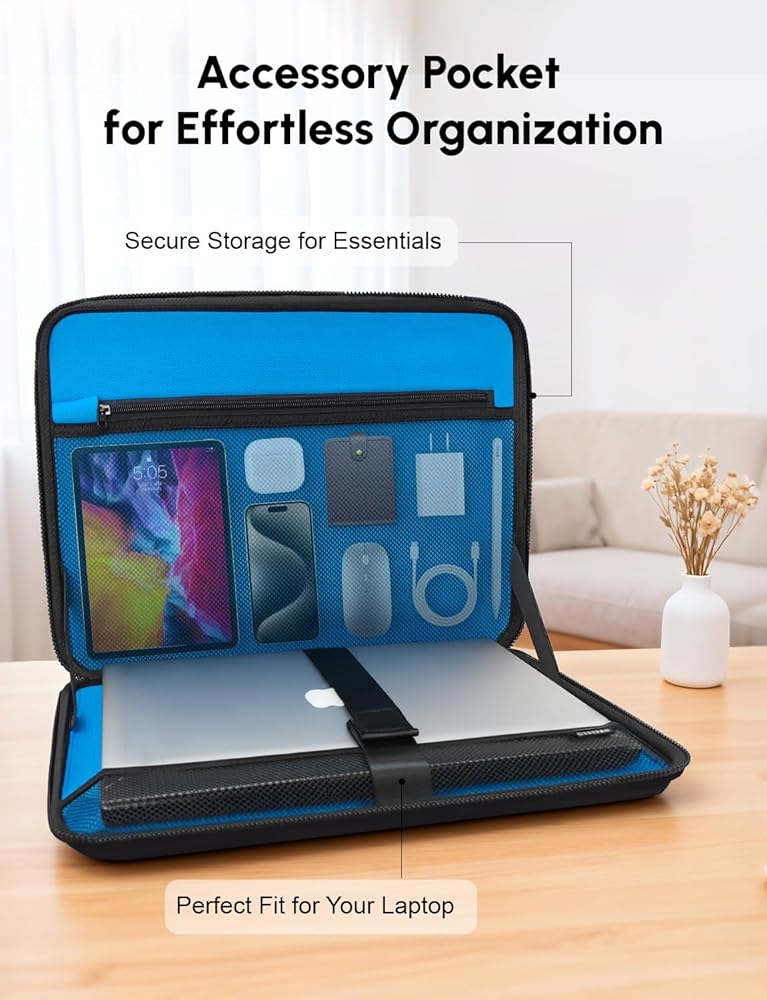 Shockproof & Waterproof: The outer surface is made of premium thickened EVA material,offers ultimate protection for your laptop from accidental scratches, dints, scrapes, spills and dirt.