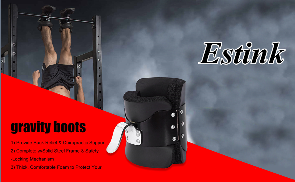 Estink Hanging Pull Up Boots,1 Pair Black Inversion Hang Up Boots Therapy Gym Fitness Physio Hang Spine Posture with Comfortable Foam Padding and Locking Clips
