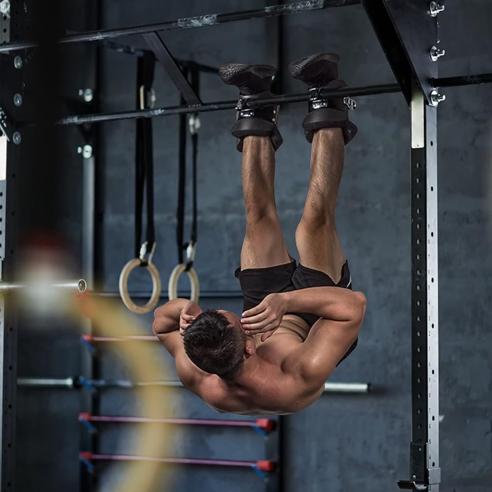 ALLEVIATE BACK PAINS AND MUSCLE SPASMS:If you have experienced these or other issues related to muscle or back pain, you can possibly relieve it and stretch neck, back and shoulder muscles with the fitness gravity boots. Hanging upside down has several benefits, such as stretching muscles, spreading compressed spinal discs apart, and relieving back pain.