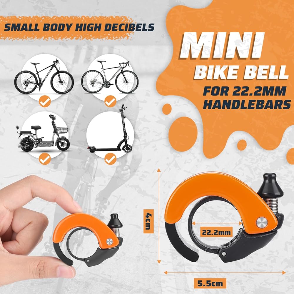 🔔【MINI BIKE BELL】 The bicycle bell is suitable for 22.2mm handlebars. The mini bicycle bell only takes up a small space on the handlebar and is perfectly integrated with the overall appearance of the bicycle, neither affecting the control nor the design aesthetic. Great for kids and adults/mountain bikes, sport bikes, racing bikes, city bikes, kids bikes and more.