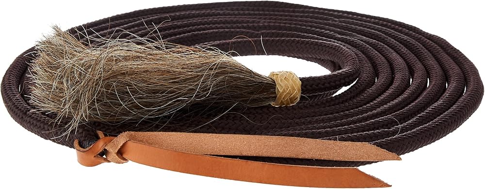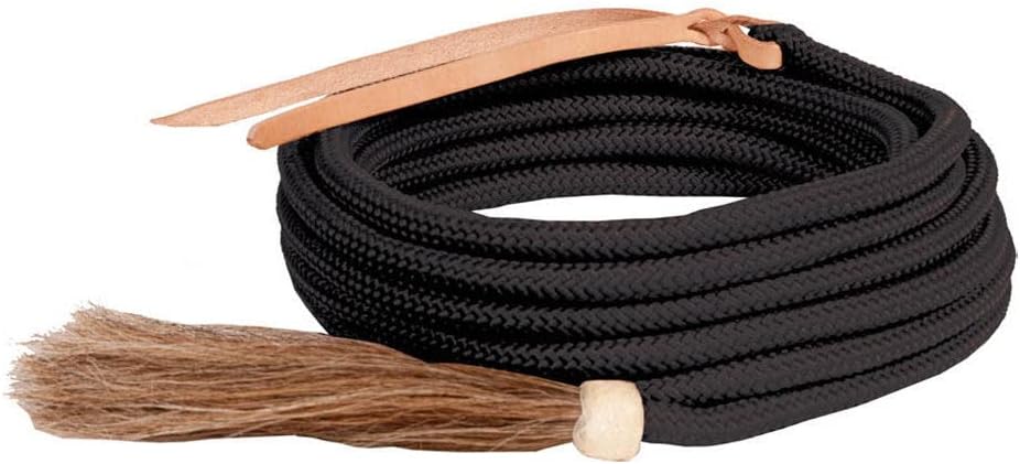 MustangMecate Reins1/2in X 23ft8120 Mustang Mecate Reins that are finished with a braided button, horse tassel, and leather popper. 1/2in X 23ft. 8120