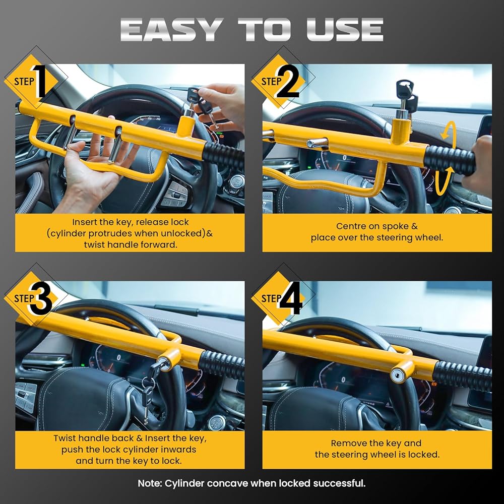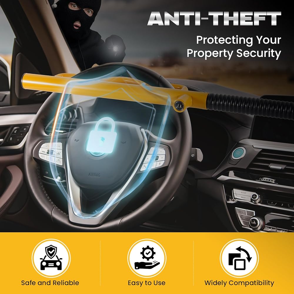 【Wide Application】The retractable car lock can be adjusted to fit a wide range of steering wheels with an inner diameter between 6.1 and 14.9 inches. It is a universal fit for cars, vans, trucks, and SUVs.