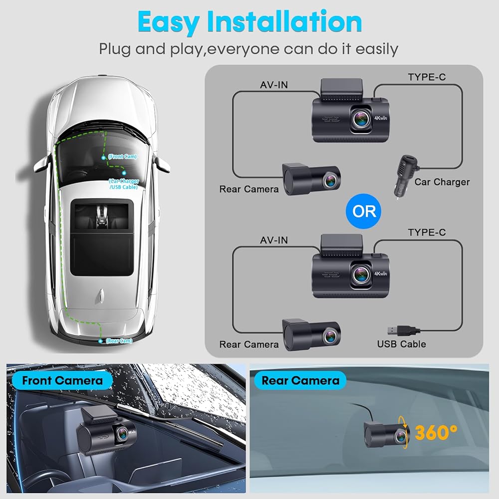 Compared to other car on-dash mounted cameras that only come with a cigarette lighter power option, we provide a extra USB power cable that allows you to plug directly into USB or USB-C type ports as most newer cars come equipped with. Even for newbies, only takes 10 minutes to install the front cam, and after installing the rear camera for up to 20 minutes. It is suitable for a wide range of vehicles including cars, SUVs, sedans, pickups, trucks, commercial vehicles, and small vans.