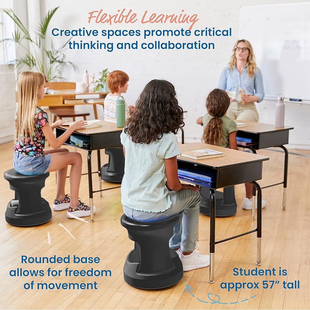 Lightweight and Portable: Durable plastic seats have built-in handles that make it easy to carry; take indoors or out to inspire learning in any environment; stools stack for storage when not in use
