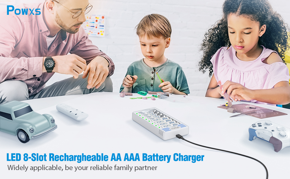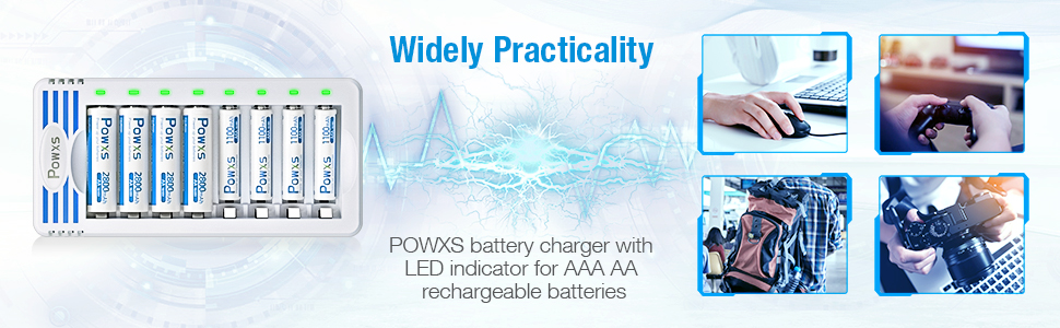 ⚡⚡⚡Universal NIMH Battery Charger: POWXS battery charger for AA AAA is widely applicable to rechargeable NIMH batteries, Charging up your various household battery be you reliablest family partner.