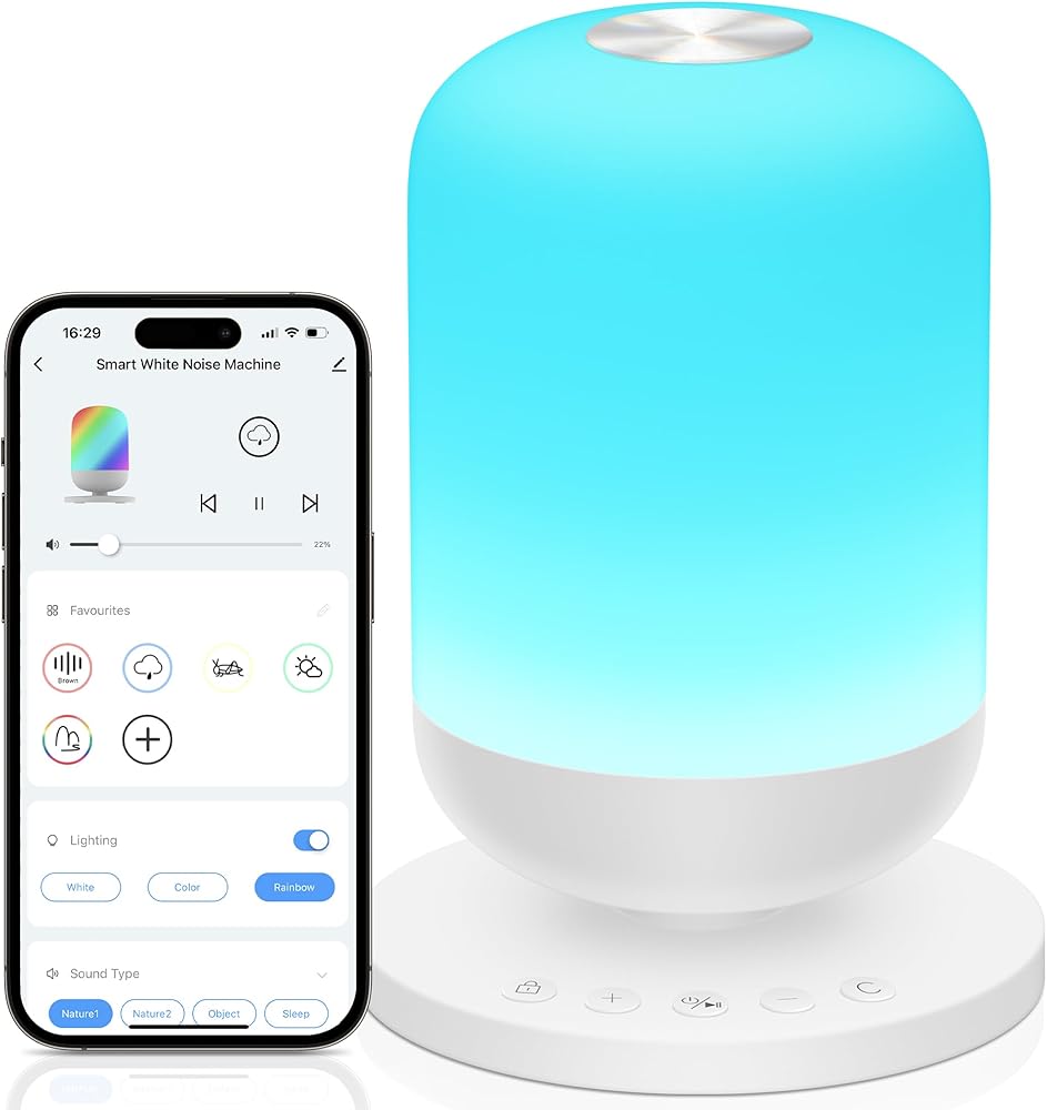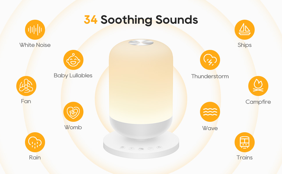【8 Night Lights and Adjustable Brightness】 This sound machine with night light is dimmable with 6 adjustable modes for sleeping/feeding without waking the baby. You can keep the light on warm light, red, blue, yellow, green, blue, purple, coral or put in it color-changing. Squash your child's fears of the dark with the help of a baby sound machine that doubles as a night light. The white noise is USB-rechargeable and operates 40+ hours on a single charge.