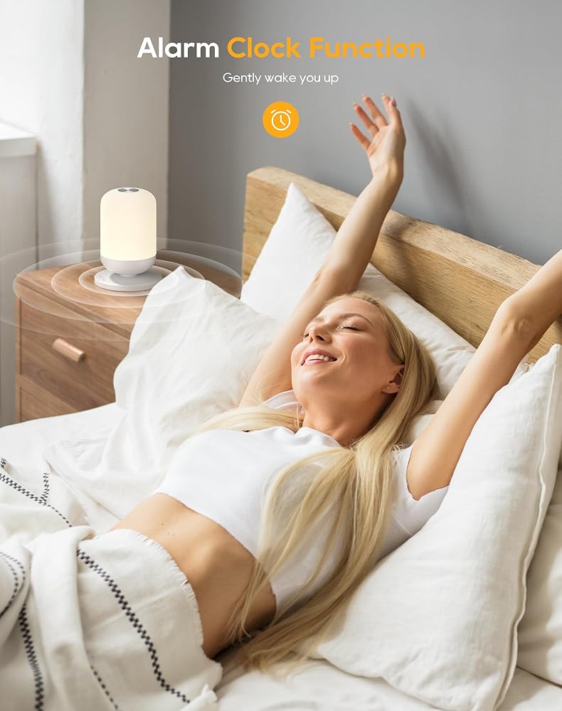 【Auto Timer &Memory Function】 The portable sound machine automatically shuts off after 30, 60, or 90minutes, or you can have it play continuously for all night along, perfect for nap schedules. A memory function saves your last setting of volume, timer, brightness, and sound. no need to re-adjust. In addition, it has a headphone jack so you can listen without disturbing your sleep partner.