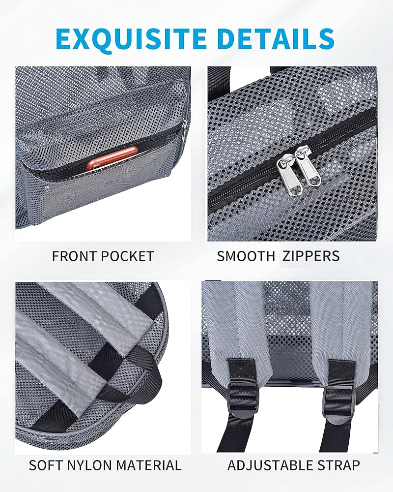 【Semi-Transparent Mesh Backpack】- Heavy duty mesh backpack with large size double zipper main compartments, which is enough to hold daily items.
